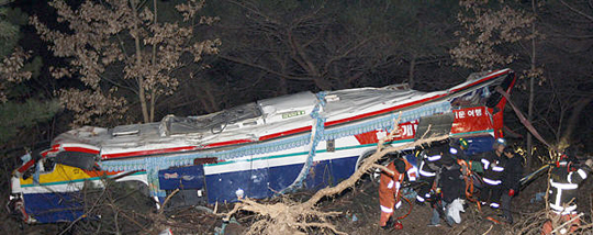 图:韩国旅游大巴坠崖30余人死伤(2)