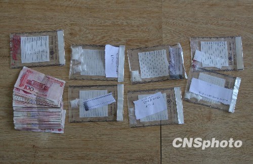 缴获的各种毒品和赃款。中新社发 黄金昆 摄
