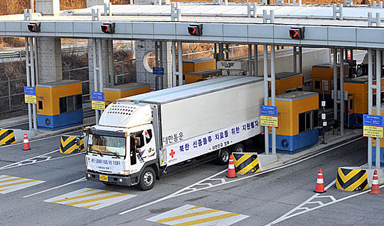 12月18日,在韩国坡州,装载有援助朝鲜防控甲型H1N1流感药物的货车通过关卡驶向朝鲜。经韩朝双方协商决定,韩方当天通过京义线陆路通道,向朝鲜开城运送40万人份达菲和10万人份达菲替代药物“瑞乐沙”,以帮助朝鲜防控甲型H1N1流感。 朝方此后将向韩方提供药品分配情况报告。