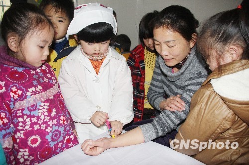 图:娃娃模拟演练防“甲流”(4)