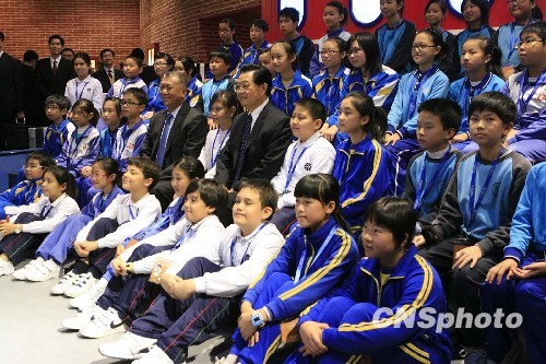 12月19日下午,国家主席胡锦涛在澳门特首何厚铧陪同下参观澳门科学馆,并与当地学生亲切交流。