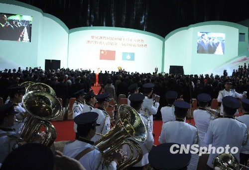 12月20日,庆祝澳门回归祖国十周年大会暨澳门特别行政区第三届政府就职典礼在澳门东亚运动会体育馆举行。