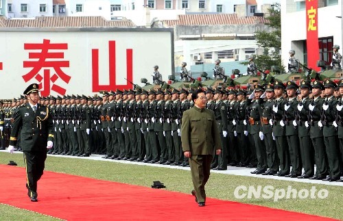 12月20日,中共中央总书记、国家主席、中央军委主席胡锦涛检阅驻澳部队。驻澳部队司令员王玉仁陪同检阅。