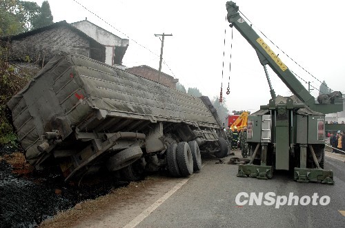 四川南充发生罐车侧翻事故,造成死亡3人。中新社发 肖梁 摄