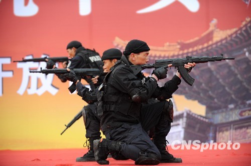图为市民眼中颇为神秘的昆明市公安局特警支队云豹突击队也在此次活动中亮相。中新社发 刘冉阳 摄