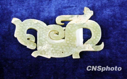 春秋战国时期谷纹龙凤玉佩。中新社发 李得荣 摄