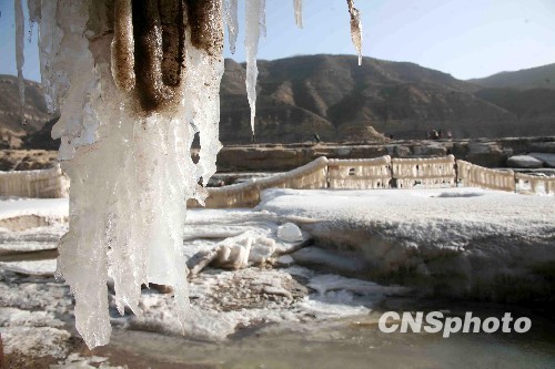 黄河壶口瀑布出现奇特美丽冰凌景观(2)