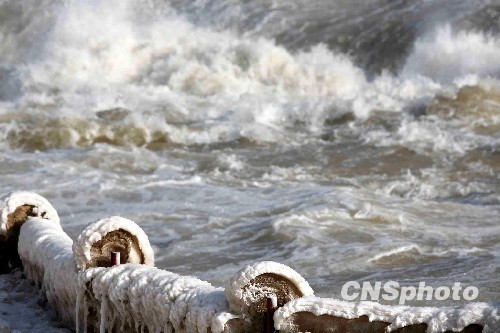 黄河壶口瀑布出现奇特美丽冰凌景观(5)