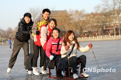 图:北京什刹海冰场迎客 市民感受冬日雪趣(2)