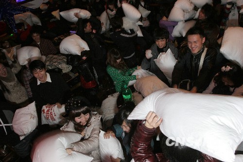 组图:武汉举行五百人枕头大战狂欢派对(4)