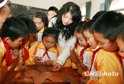 图:江西小学生用树叶作贺卡 创意又环保(2)