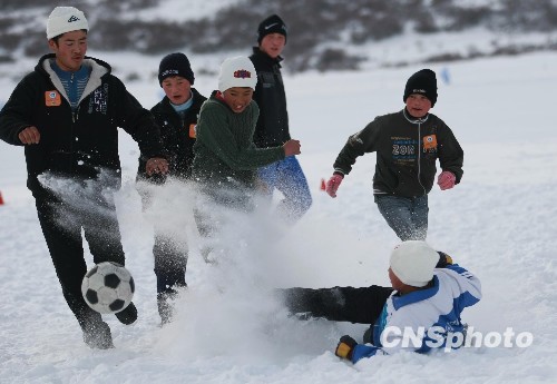 12月28日,新疆乌鲁木齐郊区的白云滑雪场,当地农牧民学生上演了一场“雪地快乐足球”,两队学生在雪地中你来我往,尽情享受冰雪乐趣。乌鲁木齐第七届丝绸之路冰雪风情节正在该市如火如荼的进行当中。新疆冬季冰雪旅游资源丰富,尤以雪质好、周期长、雪量大,加之民族风情浓郁,丝路文化厚重为优势。中新社发 刘新 摄