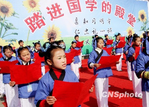 12月30日,江西省德兴市李宅小学500名学童欢聚一堂,齐诵国学“仁礼”。当天下午,在江西省德兴市李宅小学校园,学生家长和同学们一起,共庆该校第四届“国学艺术节”,在诵读的童声中接受国学洗礼,迎接新年的到来。