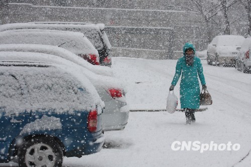 烟台大雪纷飞迎新年。中新社发 武前才 摄