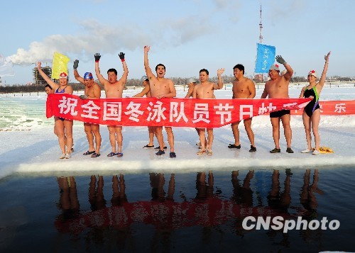 图:黑龙江黑河健儿冬泳迎新年(3)