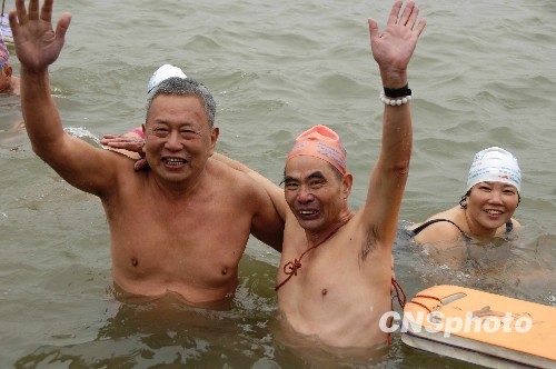 图为冬泳迎新年活动现场。中新社发 王东明 摄