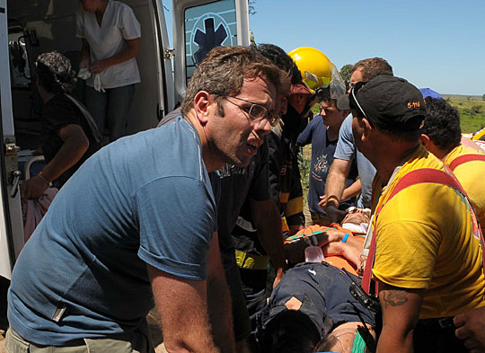 图:达喀尔拉力赛赛车撞入观众群(3)
