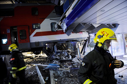 图:芬兰一列火车刹车失控撞入旅馆(2)