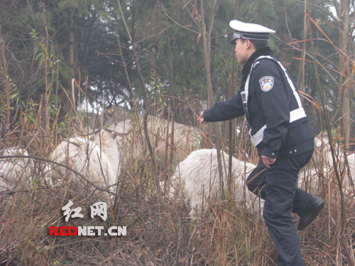 货车侧翻羊群“大逃亡”交警充当“灰太狼”(2)