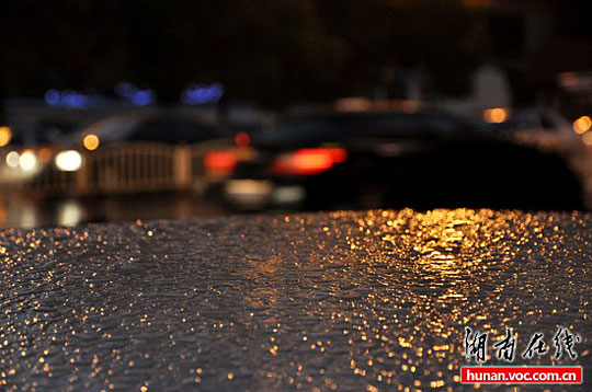 湖南长沙停靠在路旁的汽车顶棚上结了一层冰。图片来源:湖南在线 张建平 王立三 摄