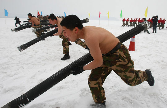 1月7日,长春市公安消防支队举办了首届攻坚组“精英杯”挑战赛,来自21个中队的84名消防官兵,赤膊在寒冬开展了一场精彩的耐寒训练。