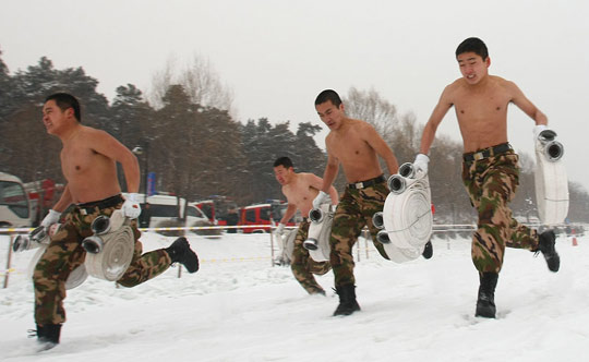 组图:长春消防官兵雪中赤膊苦练 (3)