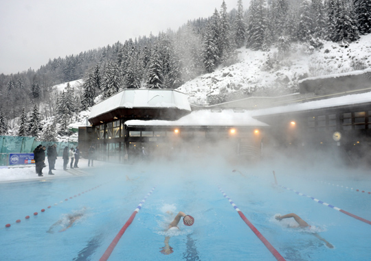 组图:法国男子游泳队雪地中“练泳姿”(4)