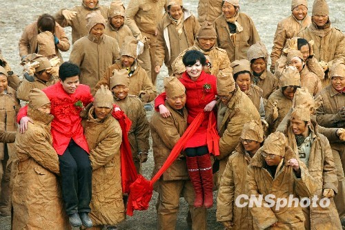 组图:黄河岸边上演行为艺术婚礼(2)