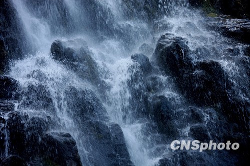2010年1月9日,在黄山拍摄的晶莹剔透的六股尖冰瀑景观。连日来,安徽省黄山受强降温天气的影响,雨雪交加,气温骤降,一路走低。位于黄山(新安江、富春江、钱塘江)的“三江”源头320多米高的六股尖瀑布,为“三江”源头第一瀑,近日接连出现罕见的冰瀑奇观,分九层从山顶跌宕而下,似白龙出涧,层层叠叠,在冬日阳光的照射下,熠熠生辉,晶莹剔透,洁白如玉,令人叹为观止。 中新社发 方也广德 摄