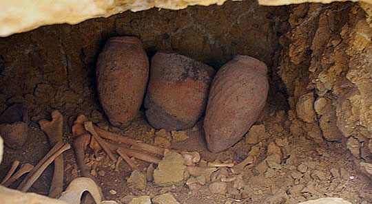 图为胡夫金字塔附近发现的工人墓穴中的遗骨和随葬品。