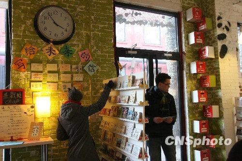 1月11日,两位德国顾客在北京798艺术区一家叫做“慢递邮局”的小店挑选贺卡,准备写封“给未来的信”。中新社发 苏丹 摄