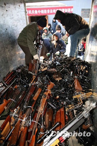 图:辽宁警方销毁一批枪支和管制器具(3)