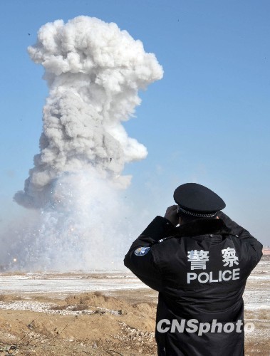 1月13日,北京市政府烟花办在大兴区埝坛水库举行非法烟花爆竹销毁现场大会,4000余箱非法、伪劣、超标烟花爆竹被销毁。