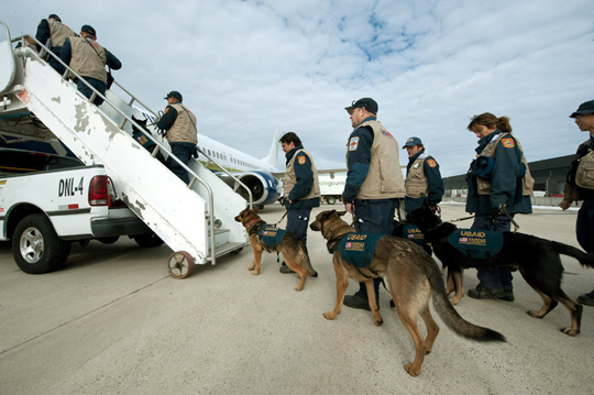 图为美国救援队准备出发。海地发生强烈地震,伤亡惨重,国际社会在第一时间纷纷伸出援手。中国、美国、法国等多个国家和地区的救援队已集结完毕,奔赴海地地震灾区。