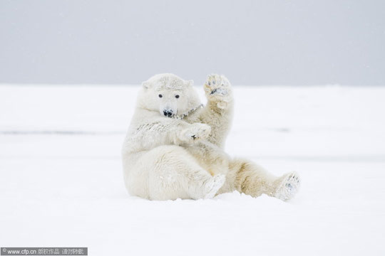 1月12日,美国阿拉斯加费尔班克斯附近,一头五六岁大的北极熊叼着一根树枝玩耍,甚至还对着镜头“招手”。而这些画面通通被摄影师Steven John Kazlowski拍了下来。这位在阿拉斯加拍摄北极熊长达11年的摄影师向我们展示了这种大型肉食动物的可爱面。