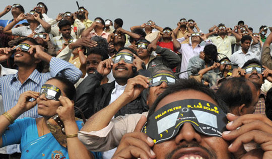 组图:印度民众观测千年一遇日环食(4)
