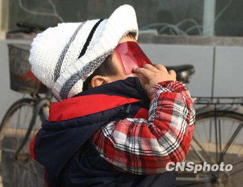 图为山东济南市的儿童在观赏日环食。中新社发 牛杰峰 摄