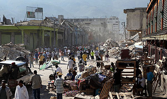 1月15日,海地7.0级强震已经过去了3天,大街上一片狼藉。一些灾民为了食物发生争抢事件。