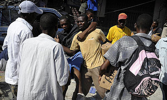 在海地首都太子港,一些灾民为了食物发生争抢。