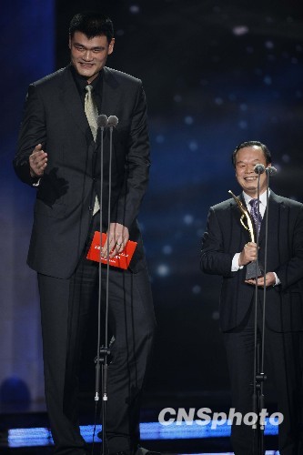 姚明与北大校长周其凤担任2009CCTV体坛风云人物颁奖盛典的开奖和颁奖嘉宾。中新社发 盛佳鹏 摄