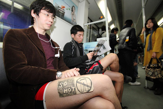 广州网友不穿裤子搭地铁 宣传低碳生活(2)