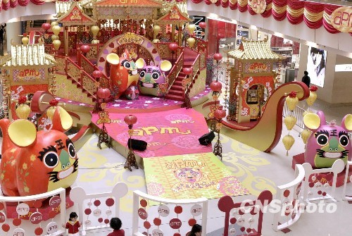 虎年将至,香港一家商场营造喜气洋洋气氛,精心布置的迎新年装置,让游客及市民提前感受浓浓的节日气氛。中新社发 张勤 摄