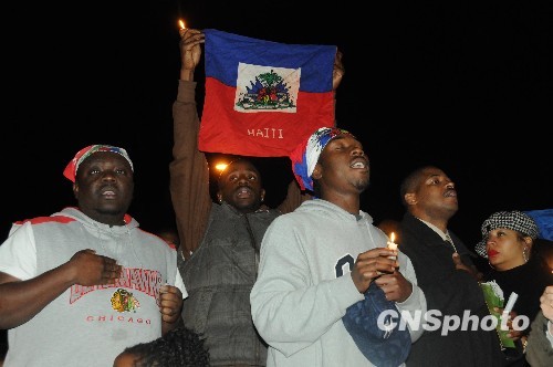 图为烛光守夜活动上,旅美海地人高唱圣歌悼念遇难同胞。中新社发 吴庆才 摄