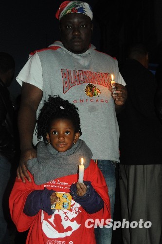 图为一对父女在烛光守夜活动上为遇难者祈祷。中新社发 吴庆才 摄