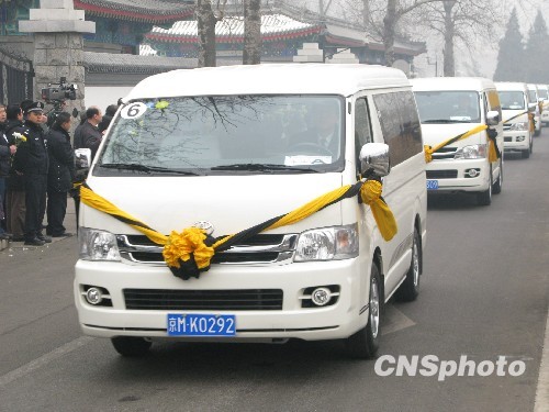 1月19日,八名赴海地维和英雄的灵车抵达北京八宝山革命公墓。中新社发 张子扬 摄