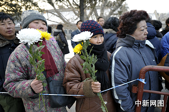 图为北京各界民众自发在八宝山革命烈士灵园门口等待送别中国维和英烈。中新网记者 金硕 摄