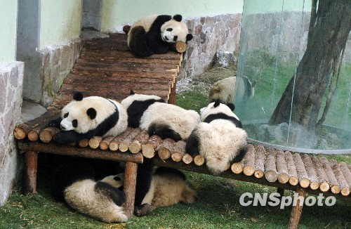 2010年1月20日,10只来自四川的世博熊猫在上海动物园正式与民众见面,吸引了众多中外游客前来参观。经过多日的精心照料,这些世博熊猫已经基本适应上海的新生活。