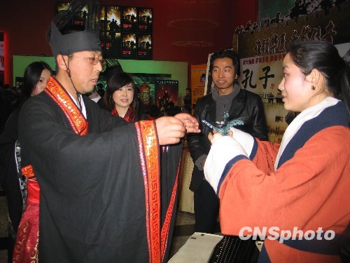 二十一日晚间,为配合电影《孔子》在西安举办首映式,西安一些汉服爱好者举办了一场别开生面的长安汉服腊祭文化活动。旨在弘扬中国传统文化,传承古老的民俗礼仪。 图为祭祀现场。中新社发 冽玮 摄