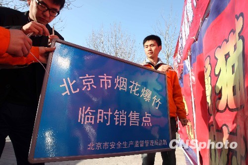 1月21日,北京虎年烟花爆竹销售大棚正式亮相。今年的销售大棚安全生产举报热线、查询热线、非法花炮举报热线全部标注在上,使消费者随时都可以与上述相关部门进行咨询等,为市民提供了方便。