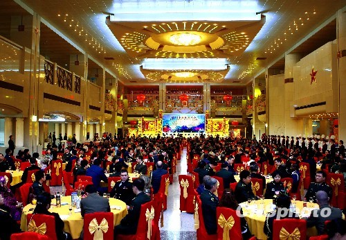 1月22日,来自80多个国家的250余位外国驻华武官及夫人,应邀出席中华人民共和国国防部在北京八一大楼举行的盛大新春招待会。中央军委委员、国务委员兼国防部长梁光烈上将,解放军总参、总政、总后、总装等四总部首长及解放军驻京大单位领导和夫人出席了招待会,由军队医护人员组成的赴海地中国医疗防疫救护队成员作为特邀代表一同出席。